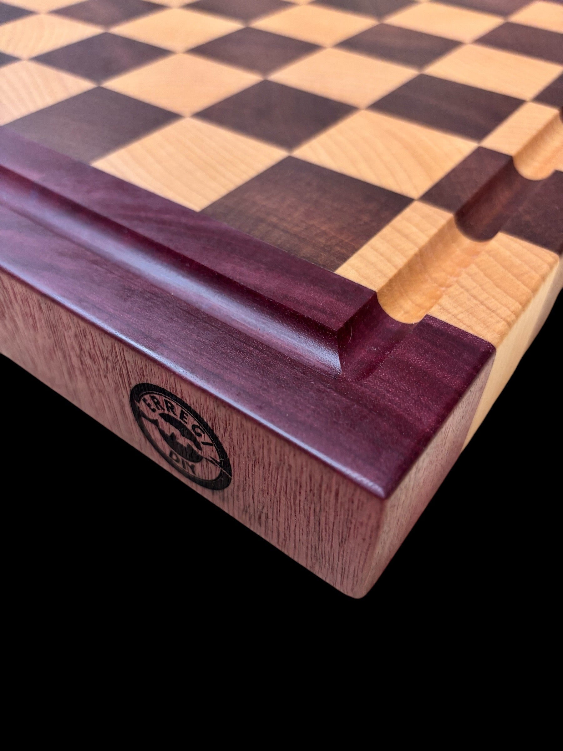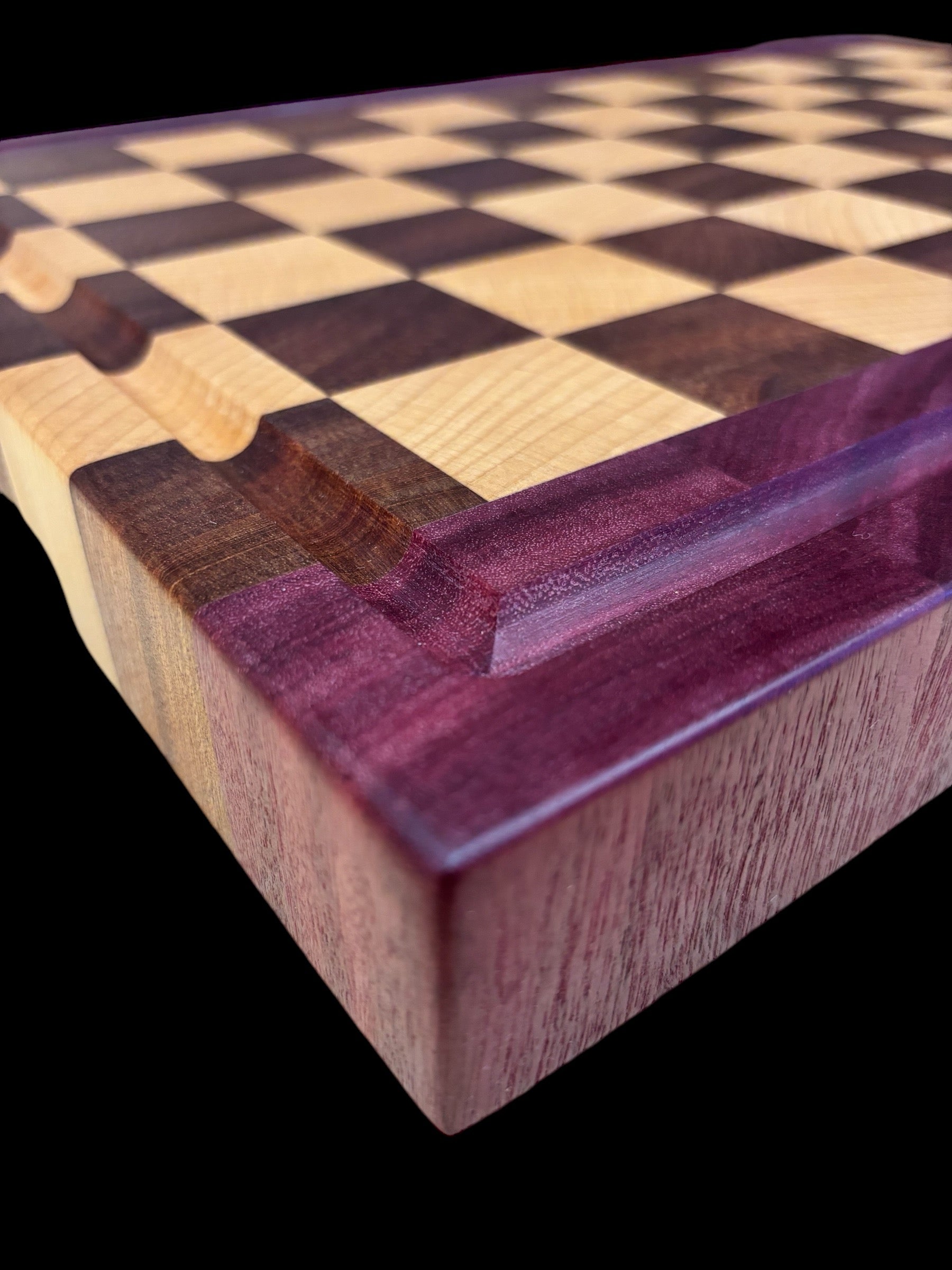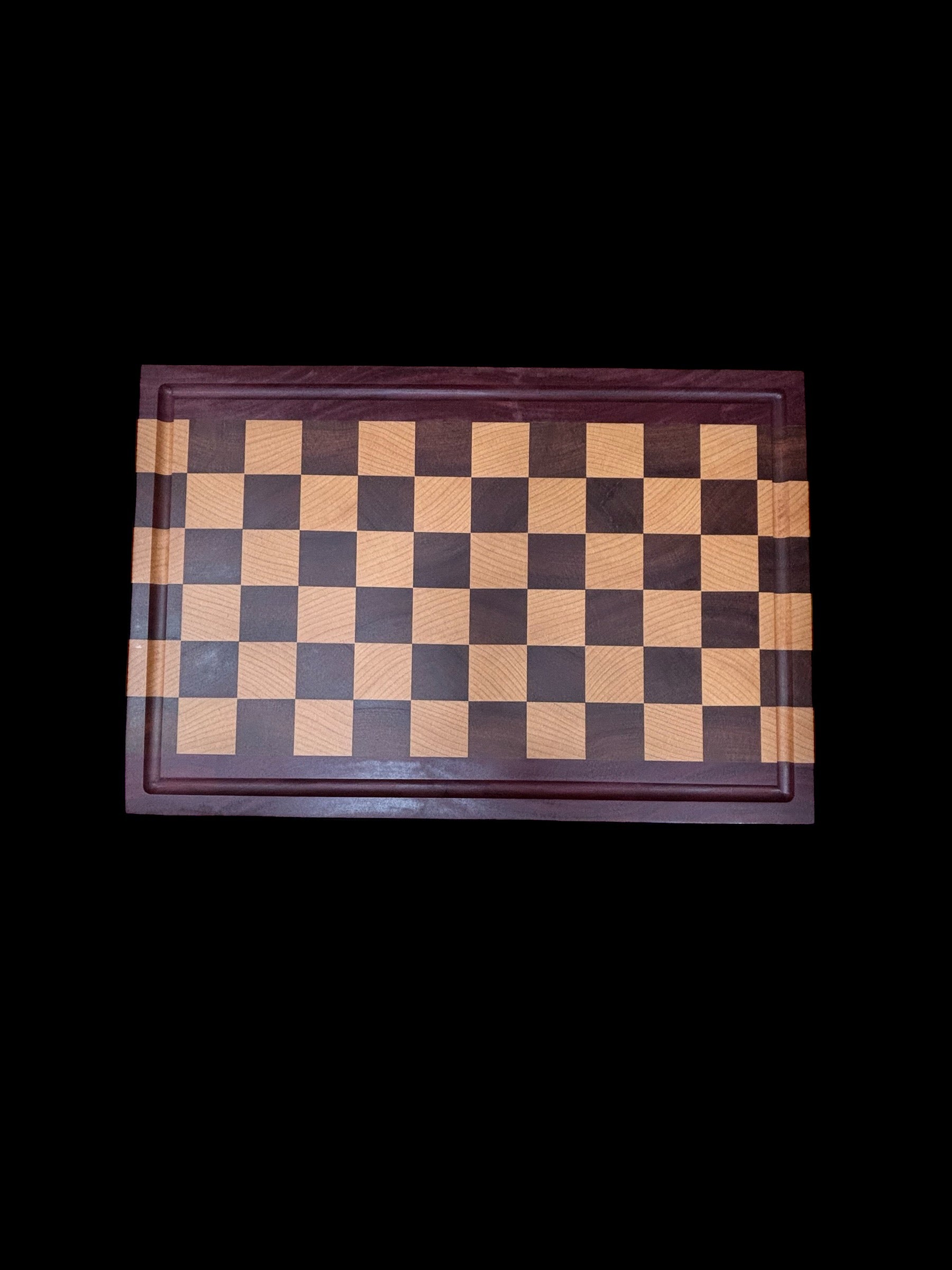 Bellissimo tagliere endgrain scacchiera mogano e faggio più bordo in amaranto
