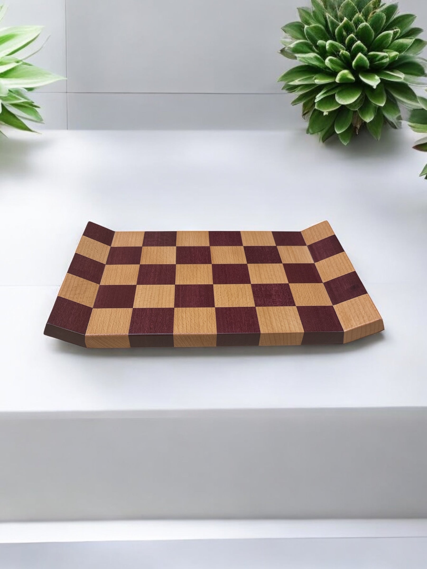 Vassoio a scacchi faggio e amaranto. Elegante perfetto per servire i tuoi aperitivi